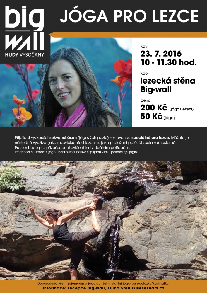 Přijďte si vyzkoušet sekvenci ásan (jógových pozic) sestavenou speciálně pro lezce. Můžete je