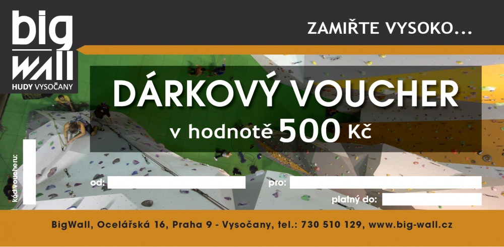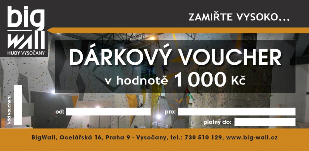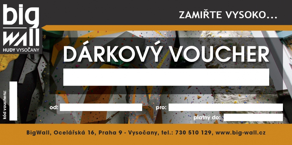 Vouchery koupíte přímo na recepci BigWallu, nebo pokud v předvánočním shonu nestíháte, můžete je objednat telefonicky (730 510 129) nebo e-mailem (info@big-wall.cz).