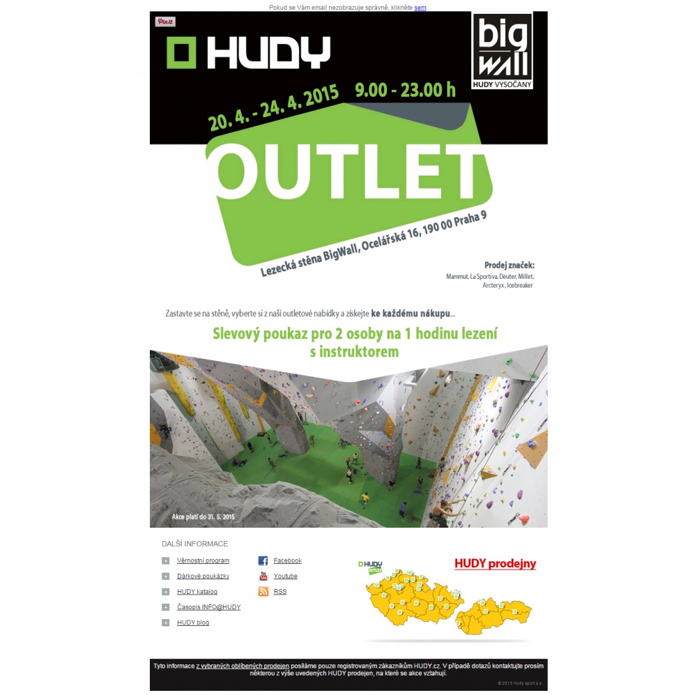 Celý příští týden 20. - 24. 4. od 9 do 23hod bude u nás probíhat HUDY výprodej následujících značek: Mammut, La Sportiva, Deuter, Millet, Arcteryx, Icebreaker a další. Ke každému nákupu navíc obdržíte slevový poukaz na hodinové lezení s instruktorem pro dvě osoby. Díky tomuto poukazu je cena hodinového kurzu lezení pouhých 150 Kč pro jednu osobu a tato cena zahrnuje vstupné na stěnu, zapůjčení veškerého vybavení a služby instruktora. Jeden kupón je platný pro dvě osoby. Zájemce prosíme, aby si rezervovali termín na info@big-wall.cz. Akce platí do 31. 5. 2015. Tak neváhejte, doražte si zalézt a omrknout, co si pro vás tento outlet přichystal. |