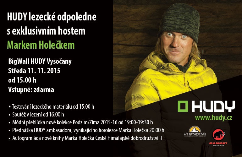 Ve středu 11.11. u nás na stěně bude probíhat akce HUDY lezecké odpoledne s Márou Holečkem.